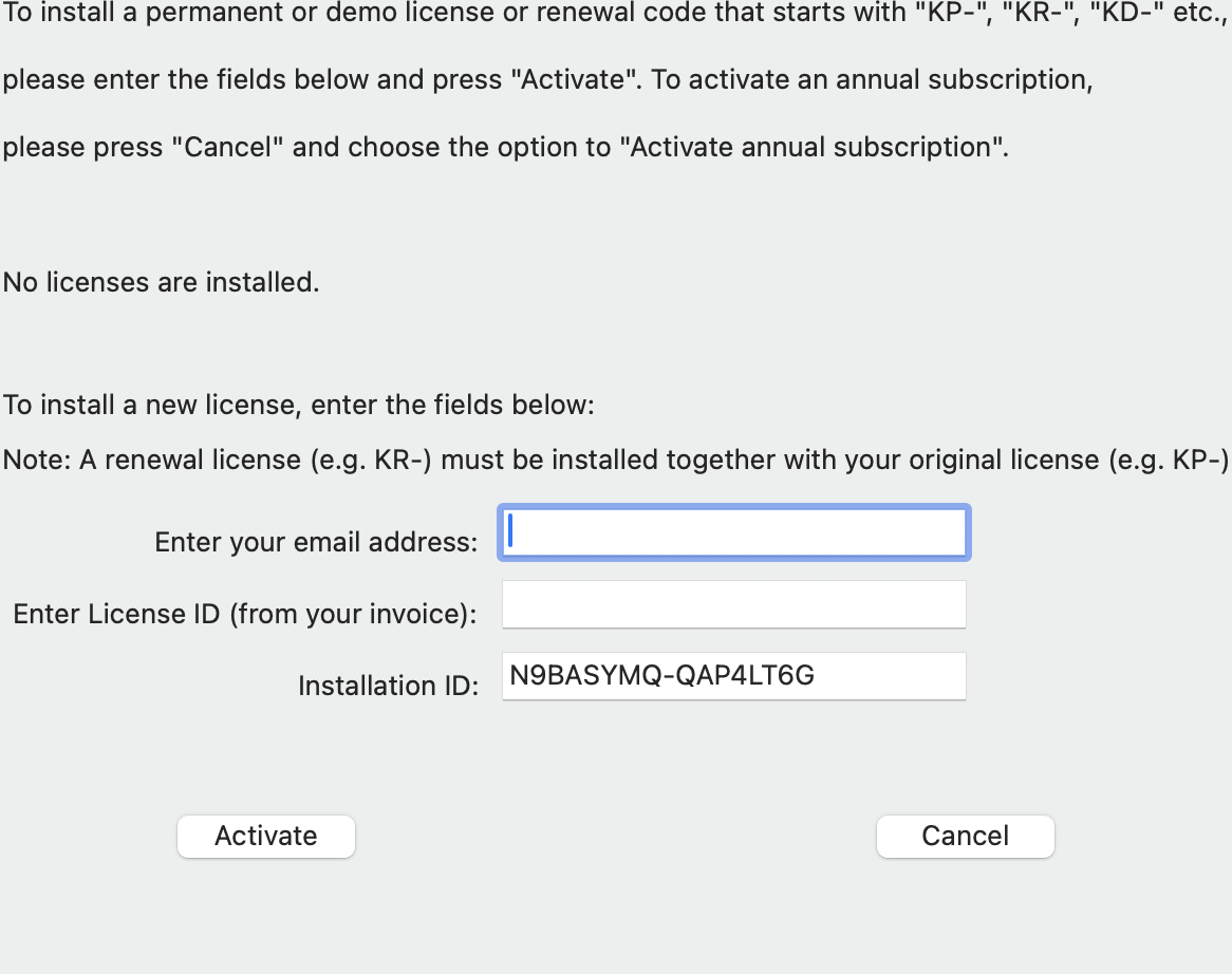 Open Kaleidoscope on your computer and select “Activate Trial or Demo License” from the “License” menu at the top of your screen. Enter the license key you received on the Kaleidoscope Trial menu and click “Activate”
