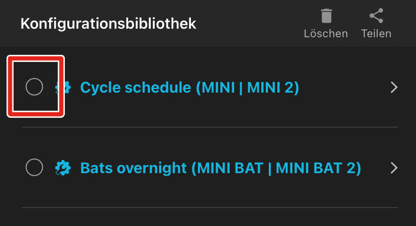 auf den Auswahlkreis links neben einer Konfiguration, um sie auszuwählen.
