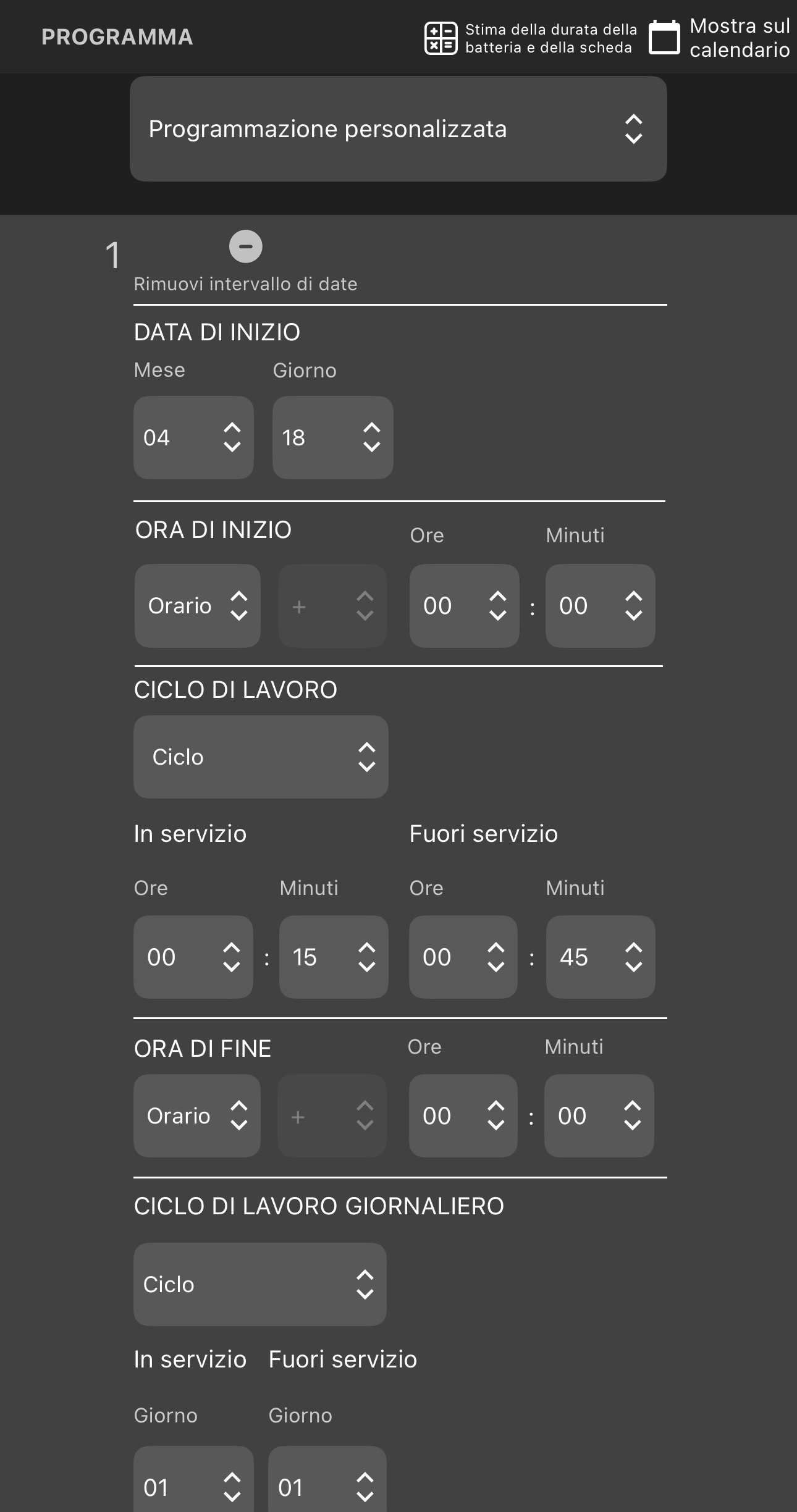Toccare per aprire il Calendario della programmazione relativo al programma attivo.