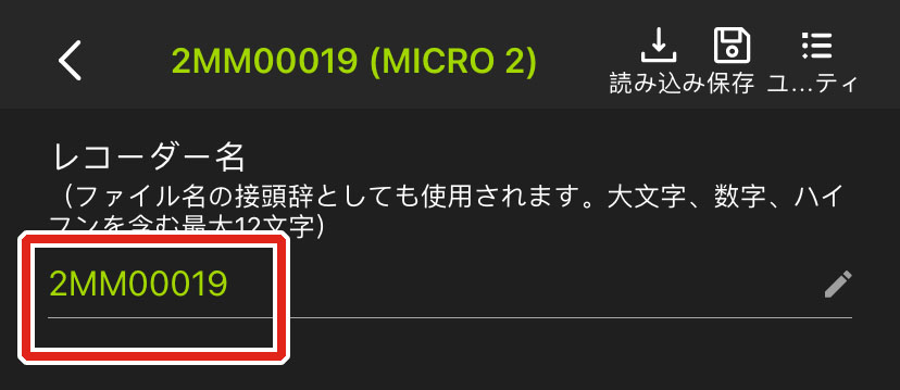 [レコーダー名]の見出しの下で、現在のレコーダー名が表示されているテキストフィールドをタップします。
